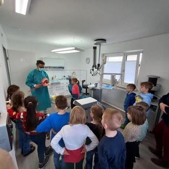 Am 20.03.24 war es wieder soweit: Dr. Habibi erwartete unsere Vorschulis zum Besuch in seiner Praxis in Vollmarshausen. Nach dem Busfahren- Üben (sogar mit Umsteigen) erwarteten uns schon Dr. Habibi und seine freundlichen Zahnarzthelferinnen, um den Kindern kindgerecht das Zähneputzen, die Praxis und den Zahnarztstuhl mit seinen Funktionen näher zu bringen. Nach dem Zähneputzen des „Riesengebisses“ mit der riesigen Zahnbürste in Begleitung unseres Zahnputzliedes der Hexe Irma setzten sich sogar alle Kinder mutig in den Zahnarztstuhl und ließen sich in den Mund schauen! Nach einem Frühstück im leeren Wartezimmer (denn die Zeit war ja extra für uns reserviert) ging es mit dem Bus zurück in die Kita…nun warten wir gespannt darauf, dass uns Dr. Habibi bald für alle Kinder in der Kita besucht…wir freuen uns!