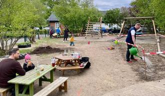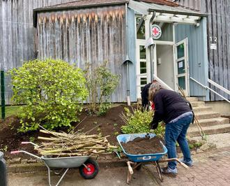 Mehrere fleißige Helfer von Klein bis groß haben dazu beigetragen, dass es rund um das Kitagelände wieder bunt und ordentlich aussieht.