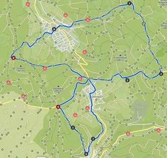 Gemeindeverwaltung – Autobahnbrücke – Windräder -Lacheparkplatz – Eiterhagen – Wattenbach – Brand – Warpelhütte-Wellerode