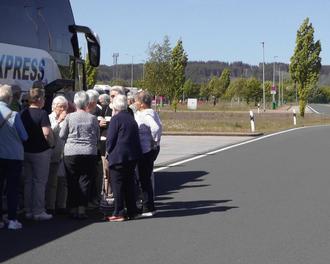 Wie schon seit vielen Jahren haben Mitglieder unserer Ortsgruppe an einer Busfahrt am Muttertag teilgenommen. Dieses Jahr ging es nach Suhl im Thüringer Wald. Bei herrlichem Frühlingswetter fuhren 2 voll besetzte Reisebusse über die neue A44 Richtung Osten bis zum Dreieck bei Arnstadt, um dann auf die landschaftlich schöne Thüringerwaldautobahn A71 abzubiegen. Bei einer Kaffeepause konnten wir das schöne Wetter und die Landschaft genießen. Es war dann nicht mehr weit bis nach Suhl, wo im Ringberghotel das Mittagessen für uns bestellt war, reichlich und abwechslungsreich.