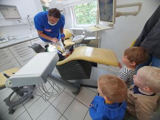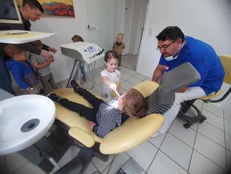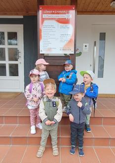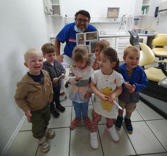 Die Kinder aus der Frischlings-Gruppe machten sich auf den Weg zu einem ganz besonderen Ausflug: Sie besuchten ihren Patenzahnarzt, Dr. Löber, in seiner Praxis.