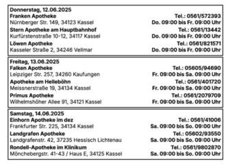 Der Nacht- und Sonntagsdienst beginnt jeweils um 8.00 Uhr.