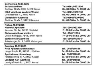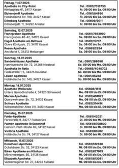 Bereitschaftsdienste in dieser Woche