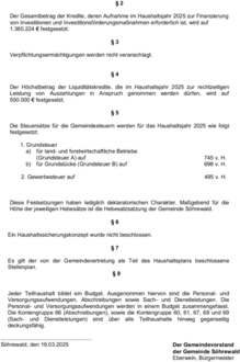Gemeindevertretung am 19.03.2025 folgende Haushaltssatzung beschlossen: