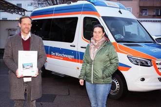 Marcus Hupfeld mit der Geschäftsführerin des ASB-Regionalverbands Kassel-Nordhessen, Judith Ehret, vor dem „Wünschewagen Nordhessen“