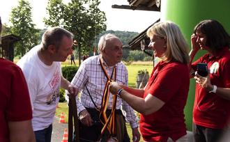 Am Abend gegen 21:00 Uhr machte sich noch eine Gruppe „Freunde und Unterstützer“ der GrimmSteig-Tage auf einen ca. 5 km-Marsch vom Sportplatz Wellerode bis oberhalb Wattenbach. Auch der Schirmherr der Veranstaltung, Herr Timon Gremmels (Hessischer Minister für Wissenschaft und Forschung, Kunst und Kultur) ließ es sich nicht nehmen, gemeinsam mit sechs Bürgermeistern aus der Touristischen Arbeitsgemeinschaft, bei beginnender Dämmerung durch die Söhre zu wandern. Oberhalb von Wattenbach wurde mit Musik, Bratwurst und Bier kräftig gefeiert und man konnte bereits gegen 22:30 Uhr die ersten Langstreckengeher begrüßen. Die hatten zu diesem Zeitpunkt immerhin schon fast 40 bzw. 20 km zurückgelegt.