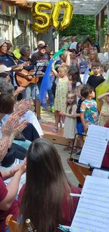 Bei strahlendem Sonnenschein fanden sich zahlreiche ehemalige und aktuelle Mitarbeitende, Familien, Freunde sowie Wegbegleiter der Einrichtung auf dem Kita-Gelände ein, um gemeinsam zu feiern, Erinnerungen auszutauschen und in Nostalgie zu schwelgen. Besonders beeindruckend war die Modenschau der Kinder, die mit Begeisterung die Geschichte unserer Einrichtung zum Leben erweckte.