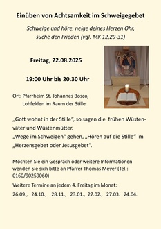 | 18:00 Uhr | Stille Anbetung in St. Johannes Bosco | |