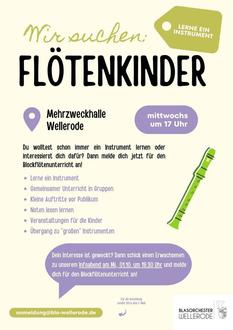 Damit es auch in Zukunft mit dem Blasorchester weitergehen kann, beginnen wir wieder mit einer neuen Gruppe mit Blockflötenkindern:
