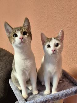 Die beiden Geschwister sind die übrigen Jungkatzen aus dem Eiterhagener-Wurf, die noch immer ein Zuhause mit späterem Freigang suchen. Ilka und Thea sind sehr verschmust und anhänglich. Zu Beginn zeigen sich die Geschwister ehr schüchtern, dies sind jedoch nur anfängliche Verhaltensauffälligkeiten. Schon nach kurzer Zeit der Eingewöhnung vertrauen alle beide bedingungslos und bringen ganz viel Energie und Leben in die Familie.