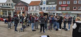 Zwei Proben standen ebenfalls auf dem Programm, die von unserer Dirigentin Lisa Löber geleitet wurden. Am vorletzten Tag trat das Orchester zu einem Platzkonzert auf dem Marktplatz in Aurich auf. Viele Menschen kamen und hörten zu. Während des Konzertes wurden zahlreiche Spenden gesammelt, die für die Jugendarbeit des Orchesters eingesetzt werden sollen.