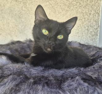 Amaya (geb. 2023) ist eine weibliche Katze ebenfalls aus einer Kleingartensiedlung. Im März 2025 konnten wir sie und ihre acht Nachkömmlinge sichern. Inzwischen wurde Amaya tierärztlich behandelt – kastriert, RCP und Leukose geimpft sowie mit Chip gekennzeichnet. Amaya ist eine zutrauliche Katze, die sich gerne mit auf das Sofa legt und die Streicheleinheiten genießt. Sie verträgt sich mit Artgenossen, wenn diese nicht sozialisiert und noch dominant sind. Einen Platz als Einzelprinzessin wäre für Amaya auch fein, jedoch nicht in Wohnungshaltung. Ihre Nachkömmlinge wurden bereits vermittelt. Für den späteren Freigang sollte das neue Zuhause nicht direkt an einer Hauptstraße liegen. Wer hat ein Herz und Platz für diese schwarze Schönheit?