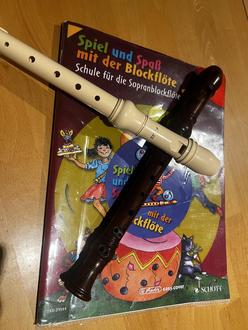 Das war eine fröhliche Runde in der Mehrzweckhalle in der 1. Flötenstunde. Nach den Herbstferien starteten etwa 20 Kinder zwischen 5 und 10 Jahren mit ihrem neuen Instrument. Einige haben schon etwas Vorwissen, die konnten gleich schon einige Töne miteinander spielen. Die anderen haben ihre mitgebrachten Flöten beschaut und mal versucht, Ihre Namen zu flöten... wie das gehen soll?