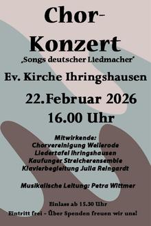 Wer uns kennenlernen möchte kann uns auch bei unserem Konzert am 22. Februar in der ev. Kirche Ihringshausen besuchen.