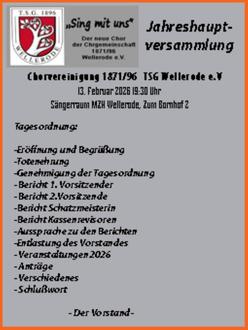 chorvereinigung1896@gmx.de mit Namen, Telefon und Anschrift