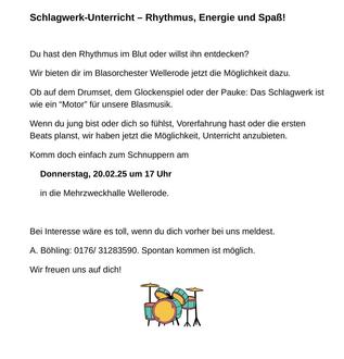 Das Blasorchester Wellerode probt donnerstags um 19.30 Uhr in der Mehrzweckhalle Wellerode.