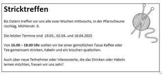Das Familienzentrum freut sich, für alle Interessierten ein ‘Stricktreffen’ anbieten zu können: