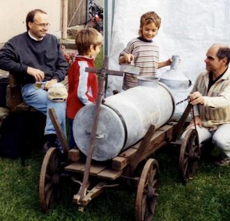 Die Jauche wurde oft mit einem Handwagen und einem kleinem Jauchefass auf die Felder gefahren. Man hatte keine Jauchepumpe, sondern einen Jaucheschöffer. Der Jaucheschöffer fasste etwa 4-5 Liter und hatte einen längeren Stiehl. Wir sagten Jauchefüller dazu. Mit dem Jauchefüller schütteten einige die Jauche wenn es regnete in die Straßengosse, man hatte somit erspart die Jauche aufs Feld zu fahren. Man hatte Ziegen und Schweine. Die Gruben war zum Teil mit Regenwasser von der Miste gefüllt. Ich habe gesehen wie Onkel Robert die Jauche bei Regenwetter in die Gosse schüttete. Das Regenwasser mit Jauche floss in der Gosse und braun gefärbt in die Ingelheim.