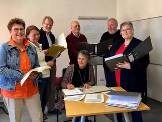Die Formularlots*innen auf dem Foto von links nach rechts: Jutta Pabst, Elvira Köhler, Manfred Mehring-Lemper, Edmund von Ass, Olaf Schäfer, Simone Wentzel und sitzend Karin Gobrecht.