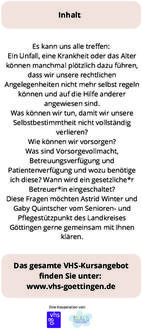Informationsabend Patientenverfügung und Vorsorgevollmacht.