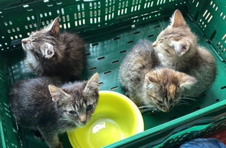 Am Montag, den 01.07.2024 wurden in Sichelnstein - 1. Feldweg rechts - am Ortseingang gegen 13.45 Uhr - 4 ca. 8-9 Wochen alte Katzenbabys ohne Mutter o.ä. in unmittelbarer Nähe der K 212 (Staufenbergstraße) aufgefunden. Die Tiere wurden gesichert und zwischenzeitlich dem Tierarzt zur Erstuntersuchung vorgestellt.