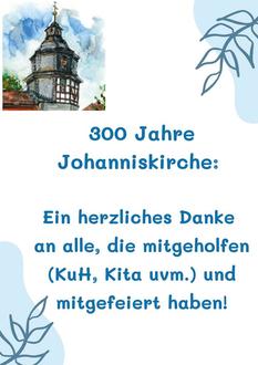 Der Kirchenvorstand Uschlag möchte sich herzlich bedanken bei dem Kultur- und Heimatverein Uschlag, dem Kindergarten Uschlag und den vielen ehrenamtlichen Helfern für die tolle Unterstützung und Hilfe bei unserem Fest - 300 Jahre Johanniskirche in Uschlag.