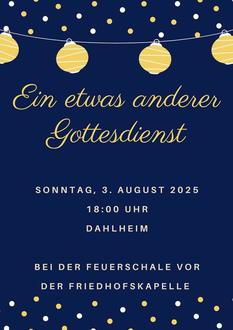 | 18:00 Uhr | Gottesdienst bei der Feuerschale in Dahlheim |