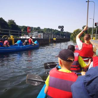 Nach dem wir die Boote klargemacht haben und eine kleine Einweisung erhalten hatten, paddeln wir los Richtung Schleuse Bonaforth. Hier probierten wir uns am selbständigen Schleusen aus. Nachdem uns die Schleuse eine Stufe höher auf der Fulda wieder rausließ, setzten wir unsere Reise fort. Kurz vor Wilhemshausen machten wir kehrt und ließen uns über das Miniwehr runterschießen. Das hat den Jungs soviel Spaß gemacht, dass wir uns ein zweites Mal hochschleusen ließen und wieder uns auf die kleine Achterbahn begaben. Nach der Rückkehr wurde als Abschluss noch gegrillt und sich in der Fulda abgekühlt.