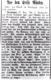 Diese zum Teil Wüste Fläche mit Büschen, Fichten und Buchen, verkaufte Rocholl etwa 1895 an den Ackermann Karl Götte in Nienhagen, Hs. Nr. 9. In alten Unterlagen wird die Fläche auch Göttens Fichten oder Tannen bezeichnet. Das Wohnhaus Götte brannte am 2. Weihnachtstag 1903, durch Unachtsamkeit von Götte in der Scheune mit der Sturmlaterne, bis auf die Grundmauern nieder. Götte verkaufte 1904 das Grundstück an Schäferei Karl Müller I. Karl Götte war mit Familie nach Kassel verzogen und eröffnete dort eine Gastwirtschaft. Eine Gaststätte mit Namen Götte gibt es noch in Kassel. Die Flächen im Nienhäger Wald wurden in meiner Kindheit entweder als Göttens Tannen oder Rocholls Koppel bezeichnet. Später wurden diese Koppel und die gesamte ehemalige Huteflächen der Realgemeinde Nienhagen von der Forstgenossenschaft Nienhagen übernommen. Die jetzige Bezeichnung der Genossenschaft lautet: „Realgemeinde und Forstgenossenschaft Nienhagen“.