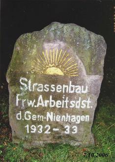 Gedenkstein vom Arbeitsdienst 1932-1933 an der ausgebauten Straße