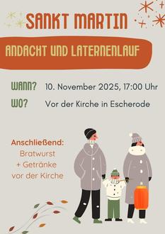 | 17:00 Uhr | St. Martinsumzug vor der Kirche in Escherode |