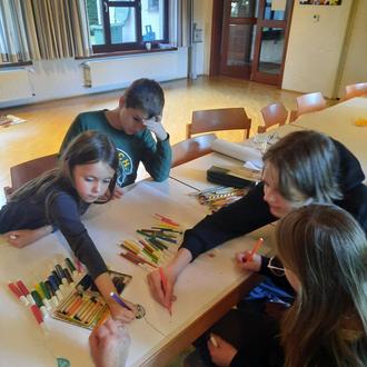 Am 25.10.24 trafen sich 5 Kinder mit Tanja Große, ihrer Schwester Janina Müller und Ina Kirchner zum ersten JuKi Treff d. Kirchengemeinde Lutterberg.