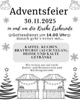 | 14:00 Uhr | Gottesdienst in der Paul-Gerhardt Kirche in Escherode anschließend gibt es Kaffee und Kuchen |