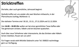 Das Familienzentrum freut sich, für alle Interessierten ein ‘Stricktreffen’ anbieten zu können: