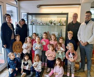 An einem Vormittag machten sich die Kindergartenkinder gemeinsam mit den Erzieherinnen zu Fuß auf den Weg ins Rathaus, um die Vitrine zu schmücken.