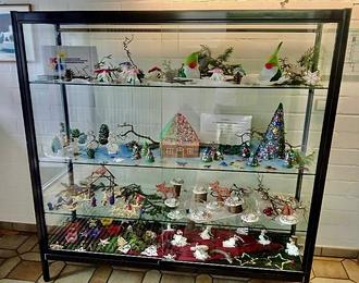 Über einige Wochen verteilt entstanden viele weihnachtliche Gegenstände zu einer Winterlandschaft, unter anderem aus Schneemännern, Tannenbäumen, Häusern, Wichteln und Sternen, die von den Krippe- und Kindergartenkindern gebastelt wurden. Insgesamt sehr schön und gelungen!