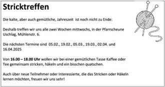 Das Familienzentrum freut sich, für alle Interessierten ein ‘Stricktreffen’ anbieten zu können:
