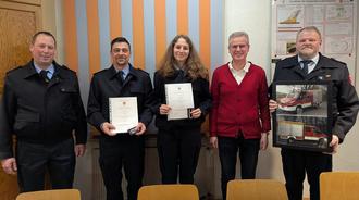 Auf der Versammlung wurden 2 Beförderungen ausgesprochen. Lisa-Celine Vogel wurde zur Feuerwehrfrau befördert, sie absolvierte neben ihrer Grundausbildung innerhalb eines Jahres gleich noch den Sprechfunklehrgang sowie den Atemschutzgeräteträgerlehrgang. Der stellvertretende Ortsbrandmeister Nico Mergner wurde nach Erfüllung der geforderten Mindestdienstzeit und erfolgreicher Teilnahme an den vorgeschriebenen Lehrgängen zum Löschmeister befördert.