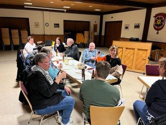Nach einer verkürzten Probe, bei der die neuen Chormitglieder die Lieder für das Freischießen kennen lernen konnten, wurde in geselliger Runde das leckere Büffet gestürmt. Auch diverse Getränke fehlten nicht, sodass noch einige Stunden fröhliche Stimmung herrschte.