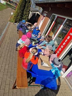 Es wurden Ostereier bemalt und am Sportplatz platziert, Gemüse in Anzuchtstationen gesät und Schmetterlingswiese angelegt. Die Kinder waren wieder mit viel Elan und Interesse bei der Arbeit.