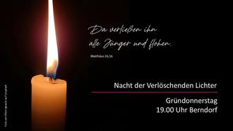 | 19.00 Uhr | „Nacht der Verlöschenden Lichter“ mit Abendmahl in Berndorf, Kirche (Pfrin. Lehmann) |