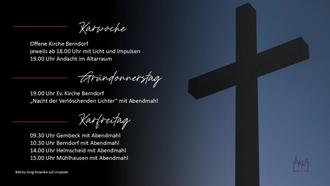 | 10.30 Uhr | Gottesdienst mit Abendmahl in Berndorf, Kirche (Pfrin. Lehmann) |