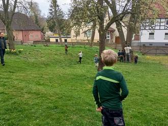 Am Sonntag den 13.04.25 ist dem TSV-Hasen ein Missgeschick passiert. Er hat rund um die Pfarrscheune Twiste die Eier und Schoko-Lollies aus seinem Korb verloren. Zum Glück halfen ihm knapp 20 Kinder dabei alles Verlorene zu suchen und den Korb wieder zu füllen. Als Dank für die fleißige Hilfe durften sich alle etwas aus dem Korb mit nach Hause nehmen. Nach der Suche konnten sich alle, auch die Eltern, bei Kuchen und Waffeln, Kaffee und Apfelschorle stärken. Das Bastelangebot wurde gut angenommen und es entstanden unter anderem schöne und liebevoll gestaltete Holzostereier, Osterbilder mit vielen bunten Stickern und frei gestaltete Osterbilder. Danach wurde die Rasenfläche zum Spielen genutzt und einige Bastelplätze wurde von den Großen besetzt, die ihrer Kreativität noch freien Lauf ließen.