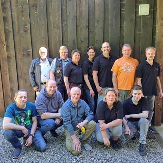 v.l.n.r.kniend: Alexander Diehl, Michael Becker, Alexander Kohl, Maren Schüttler und Ralf Hille. v.l.n.r.stehend: Stefan Schaller, Werner Piotrowsky, Sandra Bergmann, Sabine und Martin Kosneter, Ulrich Weiland und Torsten Huntziger