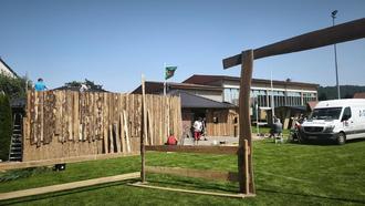 Vor der Mehrzweckhalle und auf dem Sportplatz wurde das Festgelände gemeinsam gestaltet, die Halle festlich hergerichtet und auf dem Festplatz wurden verschiedene rustikale Lager und Zelte errichtet.