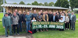 Kurz vor Beginn des Berndorfer Freischießens trafen sich Vereinsvertreter mit zahlreichen Unterstützern zu einem gemeinsamen Fototermin. Vorsitzender Heiko Emde bedankte sich bei den anwesenden Spendern und Sponsoren für ihre Bereitschaft, das große Heimatfest zu fördern. Neben der Finanzierung der neu aufgelegten „Berndorfer Geschichtsblätter“ konnte ein neues Burschenquartier angeschafft und durch die Burschen in Eigenleistung gezimmert werden.