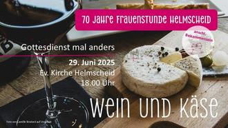 | 18.00 Uhr | Gottesdienst zum Jubiläum „70 Jahre Frauenstunde Helmscheid“, Kirche Helmscheid (Pfrin Lehmann) |