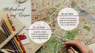 In diesen Urlaubstagen finden keine Gottesdienste in unseren vier Kirchen statt. Gemeindeglieder sind eingeladen mit dem Gottesdienst auf Reisen zu gehen: In unserem Kooperationsraum Diemelsee-Twistetal finden einige Gottesdienste an den beiden letzten Juli-Sonntagen statt. Hier finden Sie eine Auswahl. Sie sind herzlich dazu eingeladen!