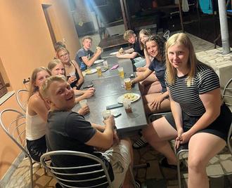 Nachdem das Gepäck und die Lebensmittel in Berndorf verladen waren, konnte die Fahrt am Freitagabend, den 12.07. beginnen. Über 18 Stunden Fahrt lag nun vor der Reisegruppe. Über Würzburg, Nürnberg und München ging es weiter nach Österreich und Italien. Bei guter Laune, Musik und viel Proviant kam einem die Fahrt auch gar nicht so lang vor. Nach den kurvigen Serpentinen in Slowenien war das Ziel schon fast in Sicht und die Bullis näherten sich unter der kroatischen Sonne der Stadt Pula. Nach der anstrengenden Fahrt ging es zunächst direkt in den Pool. Parallel wurde das Ferienhaus bezogen, sodass einem schönen Grillabend am Pool nichts mehr im Wege stand - was kann es Schöneres geben? Am Tag drauf waren Ausruhen, Sonne tanken und bei 35 Grad im Meer erfrischen angesagt.