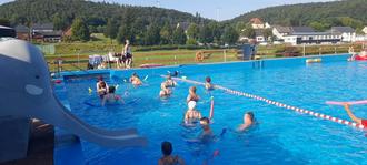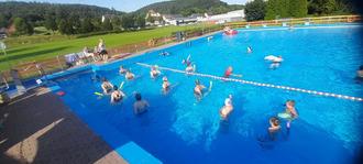 Der TSV hat sich an dem Projekt „Sport im Park“ beteiligt und es fanden vom 12.7. bis zum 30.07.24 jeweils 2 Einheiten wöchentlich statt. Dazu wurde dienstags und donnerstags um 18 Uhr im Freibad Twiste eine Wassergymnastik durchgeführt. Im Wasser wurden dazu, mit und ohne Zusatzgeräte, Übungen zur Mobilisation, Kräftigung und Koordination durchgeführt. Auch kleine Wasserspiele wurden gemacht, damit der Spaß nicht zu kurz kam. Das Angebot wurde gut angenommen und die Altersstruktur der Teilnehmer/innen war erfreulicherweise sehr gemischt. Auch der Wetterlage haben wir getrotzt, neben Sonnenschein sportelte die Sportgruppe auch bei Wind und Regen.